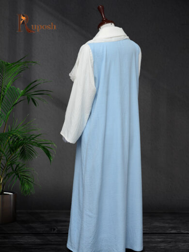 Laaj-Sky Blue and White Abaya